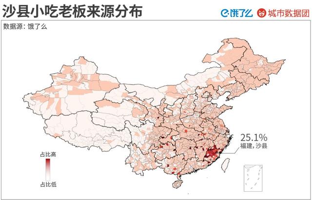 從數(shù)據(jù)上看,上海的沙縣小吃老板里四分之一出身沙縣,累計七成出身沙縣所在的三明市,甚至累計九成出身三明市所在的福建省。