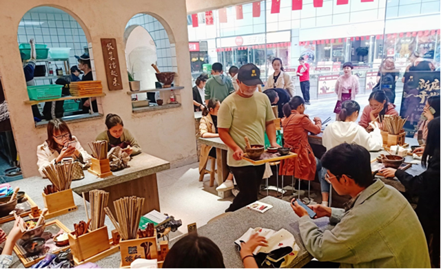 新晉網(wǎng)紅餐飲品牌擂飯創(chuàng)始人王萌琨介紹,國(guó)慶期間,擂飯核心商圈門店外地顧客進(jìn)店用餐占比高達(dá)六成,個(gè)別門店甚至高達(dá)八成。