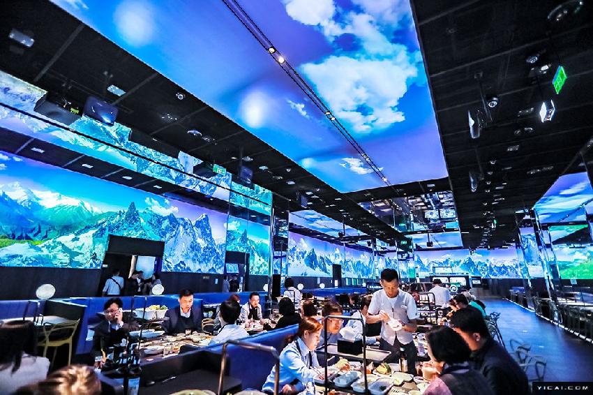 就餐區(qū)引進(jìn)聲光電科技,打破傳統(tǒng)餐廳裝修模式,運(yùn)用360度環(huán)繞立體投影、六大主題場(chǎng)景(星空、桃園仙境、雪山、油畫、治愈系)切換,為顧客帶來(lái)前所未有的 “沉浸式”火鍋就餐新體驗(yàn)。
