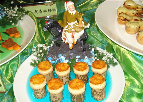 拼盤(pán)造型逼真生動(dòng),工藝精湛,每盤(pán)都有一個(gè)神話典故。不但味道鮮美可口,余味無(wú)窮,而且還可以觀賞景致,大飽眼福。