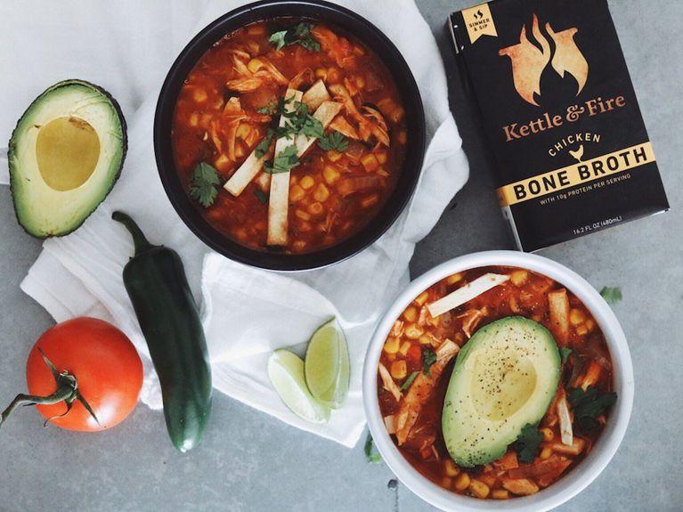與前兩者主打瓶裝素食不同,Kettle and Fire 是利樂包的骨頭湯 ,緣起于創(chuàng)始人骨折需要骨頭湯調(diào)理身體,卻發(fā)現(xiàn)沒有相應(yīng)的商品,于是開發(fā)了這款常溫利樂包的骨頭湯產(chǎn)品。