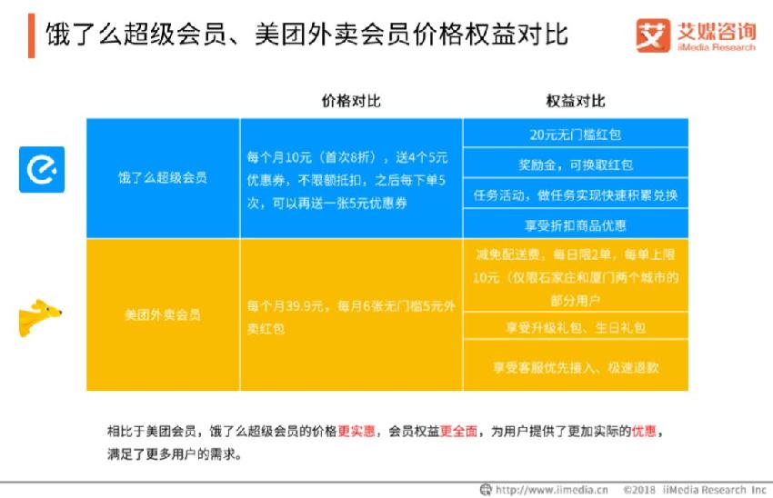 餓了么超級會員和美團會員用戶享有權(quán)益不同,會員消費行為特點也不相同。