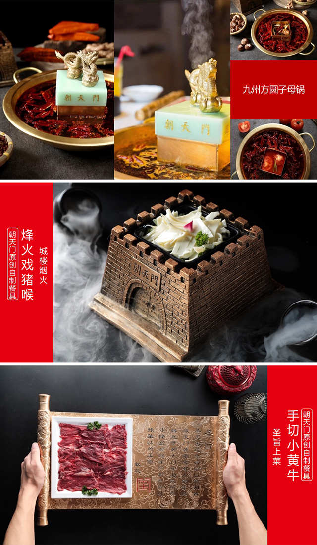重慶火鍋擁有的不僅是麻辣鮮香的刺激口味,還是一整套文化生態(tài)系統(tǒng),所以吃火鍋不僅是為了滿(mǎn)足味覺(jué),還是一次全方位的感官體驗(yàn)。朝天門(mén)火鍋通過(guò)“食、景、戲”三個(gè)模塊,為消費(fèi)者打造餐飲“璽印”文化體驗(yàn),在門(mén)店裝修、菜品擺盤(pán)、舞蹈表演、服務(wù)態(tài)度等方面都投入大量精力,力圖給消費(fèi)者帶去視、聽(tīng)、味等多重沖擊,讓天下食客“進(jìn)了朝天門(mén),就到重慶城。”