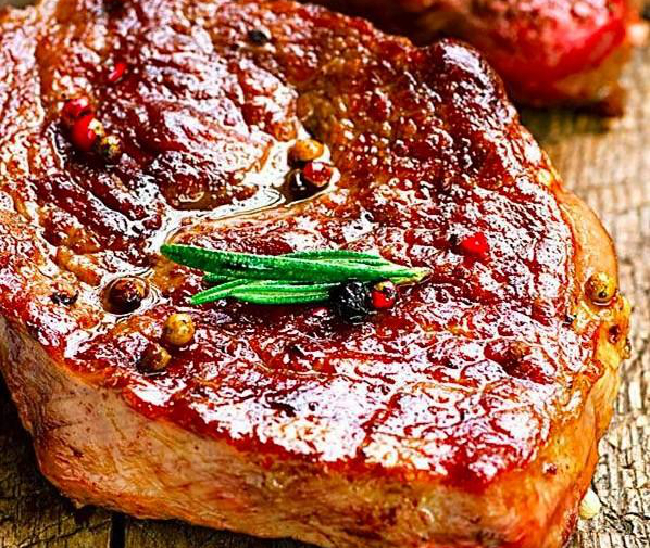 肋眼牛排。取自牛肋骨與脊骨結(jié)合部邊的肉,有雪花紋路,帶有少量韌帶口感,比起里脊肉還多了脂肪,但肥瘦適當,口感更好,看著也漂亮。