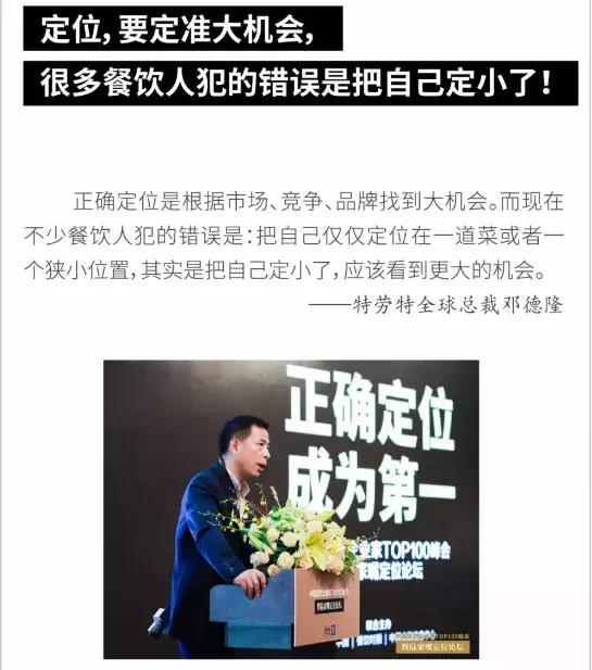 最近,特勞特全球總裁鄧德隆在一個餐飲大會上進(jìn)行了精彩發(fā)言,定位金句頻出,很多都有十足的啟發(fā)意義,但有一個觀點可能有待商榷!