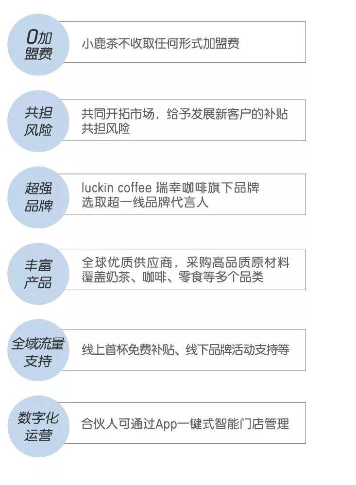 雖然小鹿茶提出“0元加盟,補(bǔ)貼首杯免單成本,不盈利不抽成”的合作政策,但具體的合作方案尚不明晰。