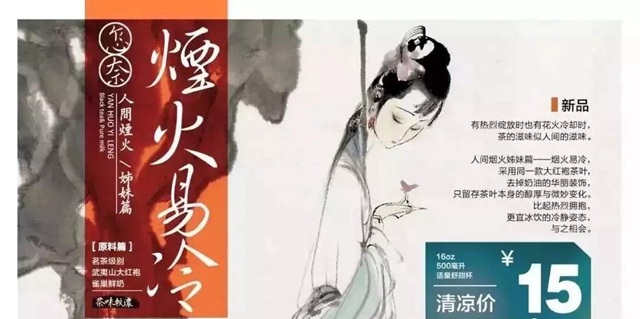 并先后買下宮廷畫手郎世寧、以及其他名畫的版權(quán),共計(jì)花費(fèi)上百萬。不僅在杯子上畫著千里江山圖,門店海報(bào)也是古風(fēng)壁紙級(jí)的。甚至開的概念店,“方寸間桃花源”來自于桃花源記,是中國(guó)人千百年來的情節(jié);“好多魚”概念店將《海錯(cuò)圖》的魚兒搬進(jìn)了太平街。出的周邊產(chǎn)品、鐵罐茶、杯子、書簽都像是“擺在博物館”的東西。