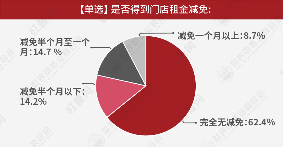 疫情爆發(fā)之初,以萬達為代表的多個商場管理方相繼發(fā)起減租免租支持餐飲的行動,受到了餐飲群體的普遍好評,然而從本次調(diào)研的反饋來看,能借助減租免租渡過難關(guān)的餐企仍然是少數(shù)。