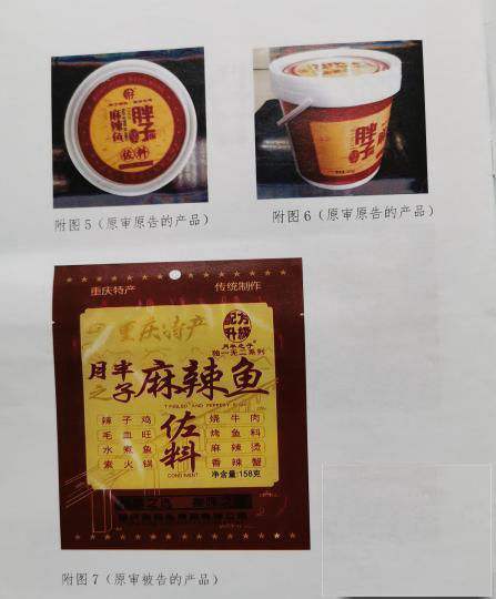 原告胖子公司享有第30類火鍋?zhàn)袅仙系?02855號(hào)等的“胖子”文字商標(biāo)。胖子商標(biāo)多次被評(píng)為“重慶市著名商標(biāo)”,胖子系列產(chǎn)品獲得過“重慶名牌產(chǎn)品證書”“最受消費(fèi)者歡迎品牌”等榮譽(yù)。原告所生產(chǎn)的“胖子牌麻辣魚”佐料在全國(guó)20多個(gè)省市均有銷售。原告享有專利號(hào)為ZL200930160342.X、ZL201430394474.X,名稱為“包裝袋”的外觀設(shè)計(jì)專利。
