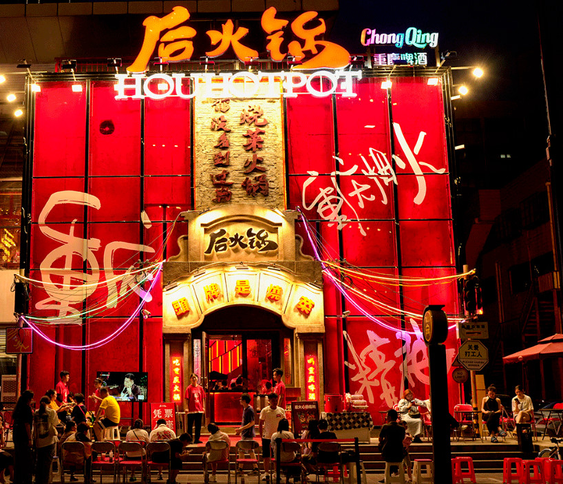 以市井風(fēng)為基礎(chǔ),再之后去到各個新的城市,后火鍋又會根據(jù)當(dāng)?shù)氐奶攸c、風(fēng)俗,作出一定的調(diào)整。比如成都店的外觀從破舊的老樓變成了精致的小民房,門頭也被設(shè)計成了一個現(xiàn)代風(fēng)十足的紅色魔方;廣州的門店內(nèi)則用到了廣東特色的燒臘明檔樣式;上海小紅樓店頗像一個現(xiàn)代化的酒吧,被消費者稱為“浪漫小紅樓”。